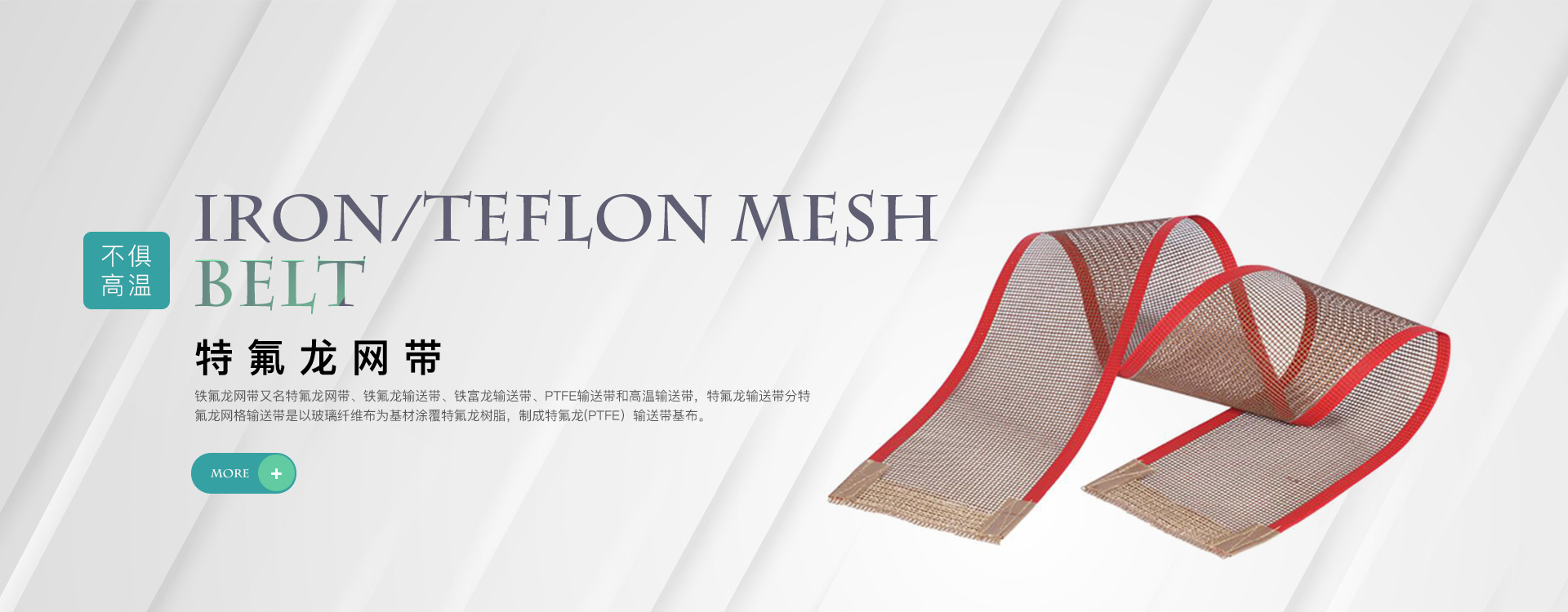 鐵氟龍網帶又名特氟龍網帶、鐵氟龍輸送帶、鐵富龍輸送帶、PTFE輸送帶和高溫輸送帶,特氟龍輸送